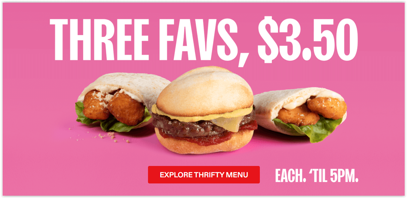 - $3.50 Thrifty Menu (Before 5 PM) – Enjoy select items for just $3.50 each when you dine in before 5 PM.