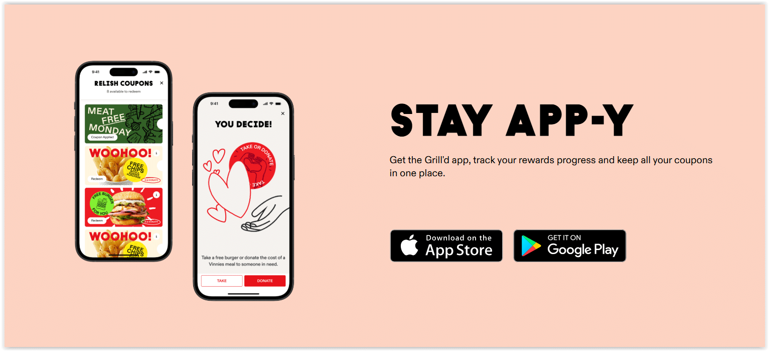 Whether you dine in or order online, Relish makes every Grill’d visit more rewarding. Best of all, joining is free and fast via the Grill’d app or website.