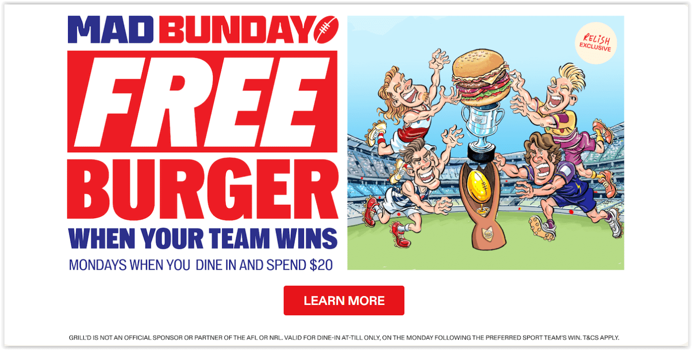 Joining Grill’d’s Relish Loyalty Program comes with a stack of tasty benefits designed to reward regulars and burger lovers alike. Members enjoy: