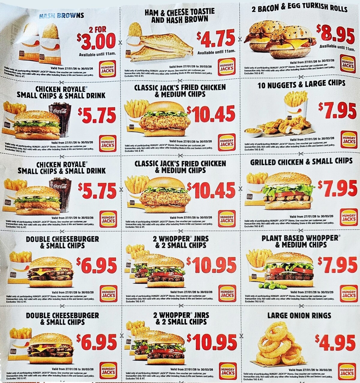 Get the Hungry Jack’s Vouchers and Coupons for Australia restaurants in 2026. Save with the Hungry Jack’s burger coupon codes and breakfast specials & Everyday Value Offers and save over $100.
